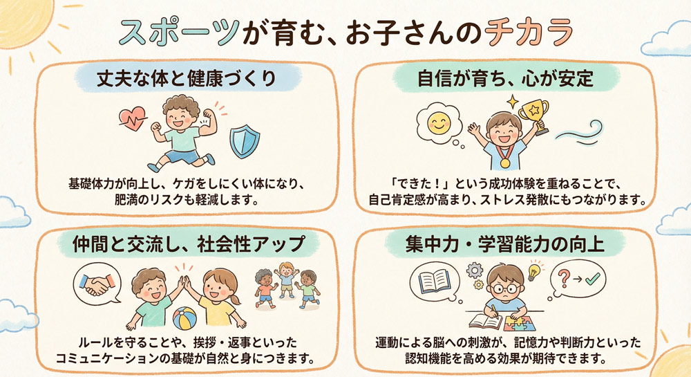 実は、スポーツ活動はお子さんの可能性を大きく広げ、心身の成長をサポートしてくれる素晴らしい機会になり得ます。