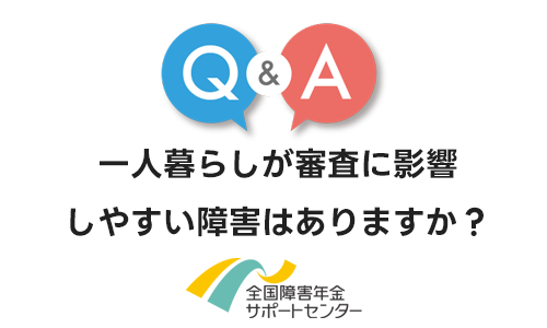 障害年金に関してよくある「一人暮らしが審査に影響しやすい障害はありますか?」というご質問にお答えします。