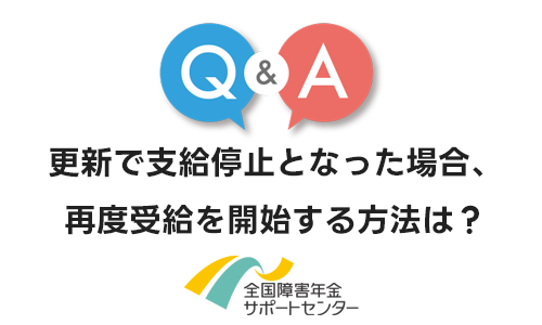 障害年金に関してよくある「更新で支給停止となった場合、再度受給を開始する方法はありますか?」というご質問にお答えします。