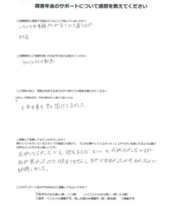 障害年金のサポートについて感想を教えてください。