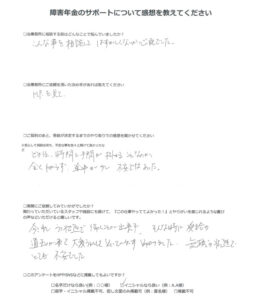 障害年金のサポートについて感想を教えてください。