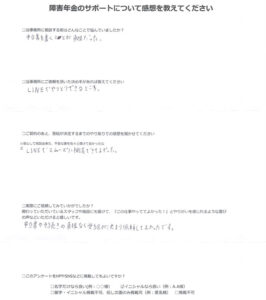 障害年金のサポートについて感想を教えてください。
