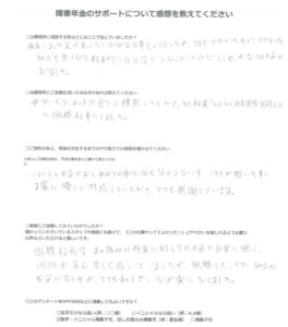 その他、当事務所にお送りいただいたアンケートをご紹介します。