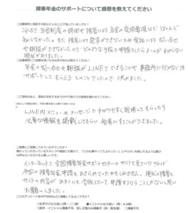 障害年金のサポートについて感想を教えてください。
