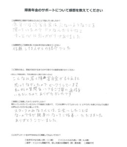 幼少期から グレーゾーンで過ごし成人し 学習障害とそこからくる 二次障害で 仕事も出来ず 本当に困っていました。絶対 障害年金の対象と思っても自分でするにはハードルが高く3ヶ所ほど連絡しましたが難しいと言われたり初診証明は 自分で取るとかで 中々お願いするまではいかず 4ヶ所めでこちらにたどり着きました。