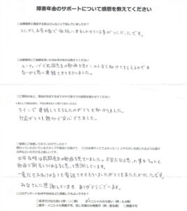 障害年金のサポートについて感想を教えてください。
