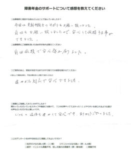 障害年金のサポートについて感想を教えてください。