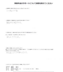 障害年金のサポートについて感想を教えてください。