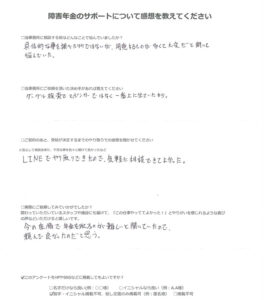 F.Y 様(2025年11月22日)からのご感想 障害年金のサポートについて感想を教えてください。 当事務所に相談する前はどんなことで悩んでいましたか? 何年も前に発病したので初診日がはっきり思い出せず、そ […]