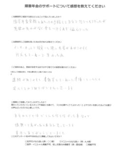 T.S様(2023年12月31日)からのご感想 障害年金のサポートについて感想を教えてください。 当事務所に相談する前はどんなことで悩んでいましたか? 何からしていいのか、わかりませんでした。 障害年金の事 […]